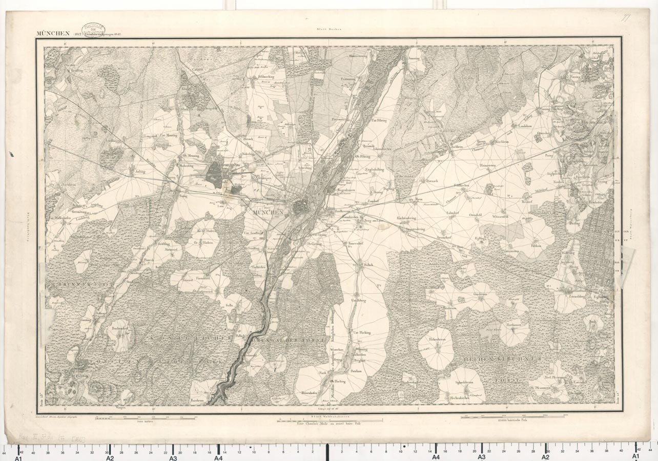 1867 lag der komplette Topographische Atlas des Königsreiches Bayern (externer Link, öffnet in neuem Tab) in seiner ersten Ausführung vor. Er wurde zum Vorbild für weitere topographische Landesaufnahmen in Europa. Anlässlich der Weltausstellung 1873 in Wien wurde das Kartenwerk mit der großen Fortschrittsmedaille geehrt.