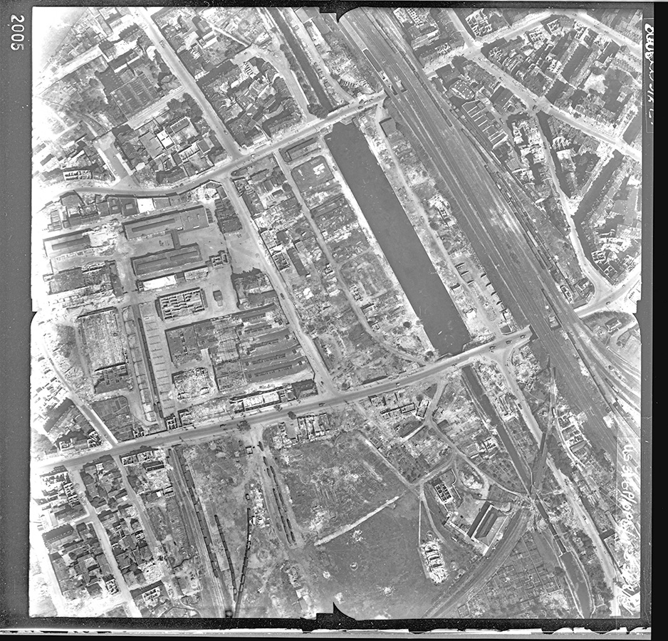 Die Ausstellung erinnert an die Zerstörung Nürnbergs - anhand von 3D-Luftbildern (Anaglyphenbilder) und historischen Aufnahmen.